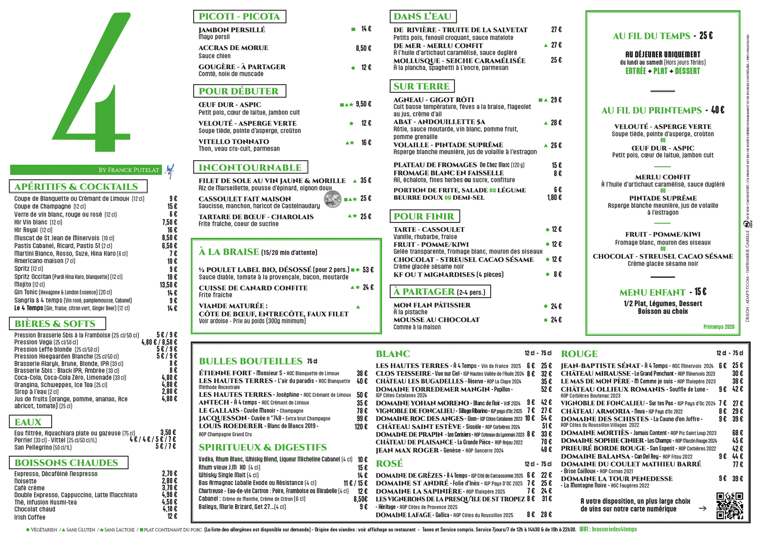 Depuis 2016, la brasserie A 4 Temps by Franck Putelat a redonné ses lettres de noblesse à la grande tradition des brasseries parisiennes, proposant une cuisine authentique et gourmande.